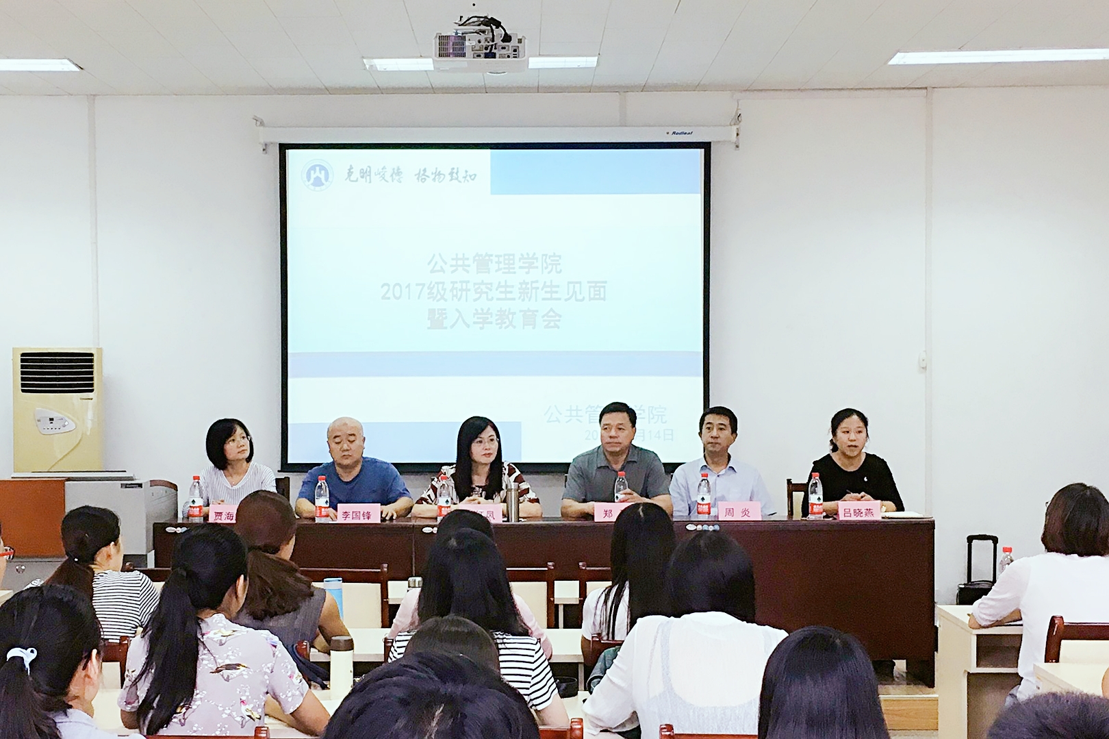首先,张红凤院长从学院的办学历史、组织架构、师资队伍、人才培养及科研成果等方面,带领2017级研究生认识了我们的发展历史、学科进展以及培养方向。之后,张院长从学习、实践、素质、信念四个方面对新生提出了四点要求,“自主探索学习,合理规划大学生活;积极融入社会实践,增强大学生应有的社会责任感;学会做人,懂得包容、感恩,讲究诚信;勿忘初心,砥砺前行”,希望新生能够正确地学习与生活,成为集“知识基础、实践能力、科学精神、人文素养”于一体的复合型立体式人才,为推动社会进步贡献自己应有的力量。