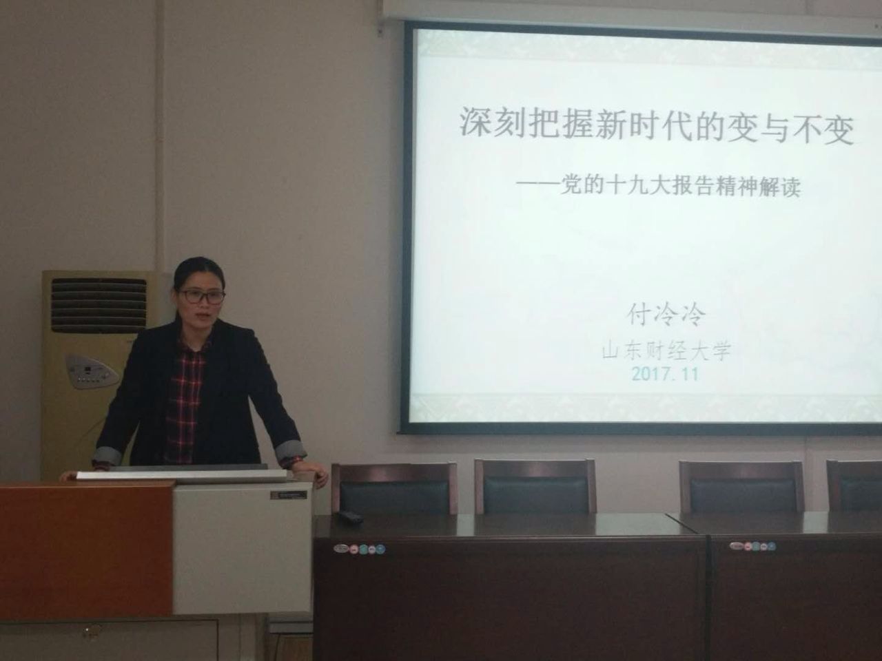 (通讯员 周昊声)为深入学习和践行十九大精神,帮助同学们领会和把握十九大提出的“新时代”的真正含义,11月16日下午,在学院党委的安排部署下,行政管理系副教授付冷冷以“深刻把握新时代的变与不变”为题,举办了一场深入浅出、意义深刻的十九大报告解读讲座。讲座由党委秘书李昭娜老师主持,必赢3003no1线路检测中心全体学生党员、预备党员以及党员发展对象收听了讲座。校党委组织部杨景波部长和我们党委书记郑磊亲临现场。