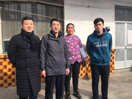 (通讯员:周炎 李旭日)为深入学习宣传贯彻党的十九大精神,全面贯彻落实全国全省高校思想政治工作会议精神,坚持围绕学生、关照学生、服务学生,着力构建政府、学校、社会和家庭教育相结合的“四位一体”大学生思想政治教育新模式,努力培养担当民族复兴大任的时代新人。按照中共山东省委教育工委《关于进一步深化全省高校辅导员家访活动的通知》(鲁教工委通字[2018]4号)和学校的有关要求,1月30日我们党委副书记周炎带领辅导员李旭日老师到淄博淄川区西河镇马家庄村和张店区四宝山街道南岭新村走访困难学生家庭,送去了学校统一补助的600元慰问金和学院为困难家庭购买的油、鸡蛋等过年物品。