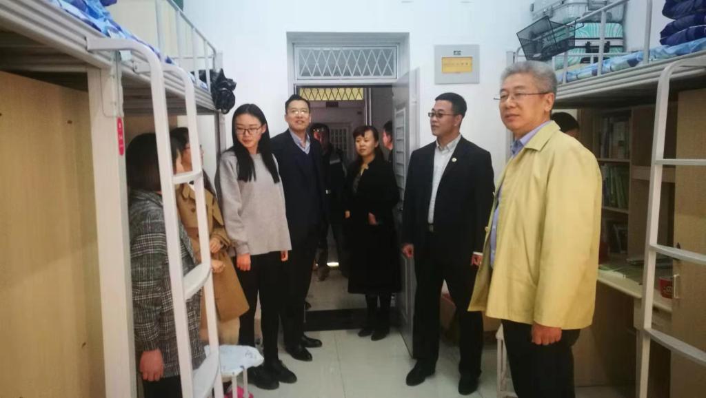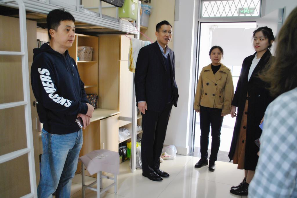 3月17日上午,学校党委书记王绍军、副校长张新、学生处处长王剑等领导来到圣井校区视察搬迁工作,期间亲临我们学生宿舍,向同学们带来了亲切的问候与关心。